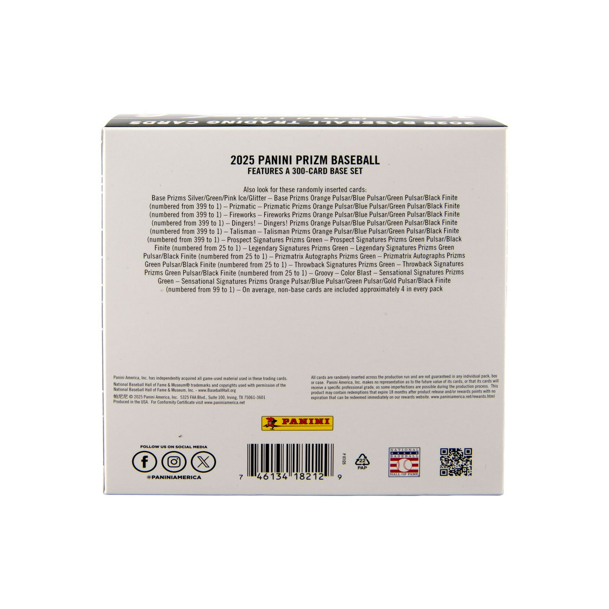 2025 Panini Prizm Baseball will deliver a 300-card checklist for the third straight year. Due to licensing constraints, most of the checklist will include top prospects, rookies, and retired players, but some of today’s top veteran stars will also appear.